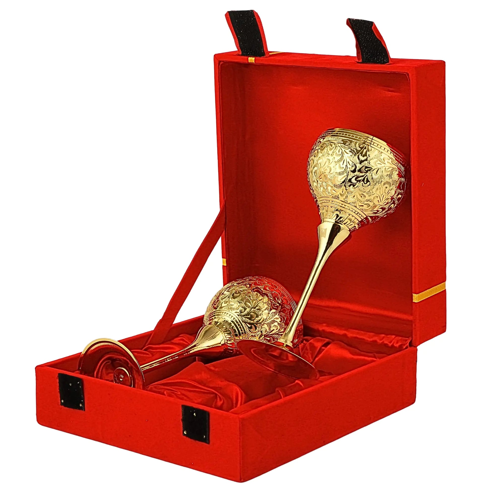 Shop wide range of collection of 24-karat wine glasses set of 2 from the house of professional handicrafts on Amazon. Our metal wine glasses are unique & royal as blue is plated which is icing on the cake. Serve any drink in unique wine glasses set of 2 for couple like vodka wine champagne etc. and make your cocktail parties memorable. Flower engraved brass goblet set as royal wine glass for decoration makes a dazzling showpiece accent in any interior & work great as a brass handicraft item. Perfect premium wine glass gift for couple and a gleaming eye-catcher for your guests can be used as glass gift item & for the decoration of restaurants bars display & for any luxury table setting. Our wine goblet glass set comes with a box makes it best wedding gift for couple special house-warming gifts for new home Diwali gift items for friends royal wine glass for couple engagement best gifts for wedding anniversary any occasion such as birthday marriage Fathers Day Christmas new year. Try these blue champagne glasses set of 2 for gift instead of German silver gift items such as silver plated wine glass. Your friends will be delighted when they open this wine glass blue gift and will love this wonderful brass handicraft gift.